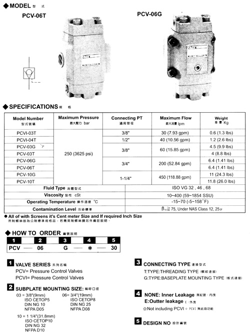 液控單向閥型號說明PCVI-03/04/PCV-03/06/10