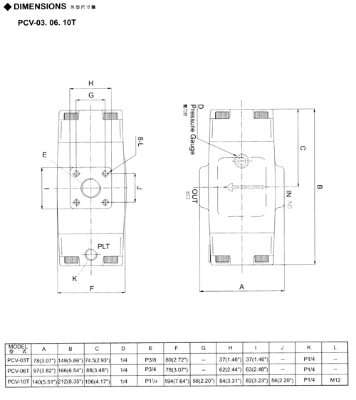 液控單向閥尺寸圖PCVI-03/04/PCV-03/06/10